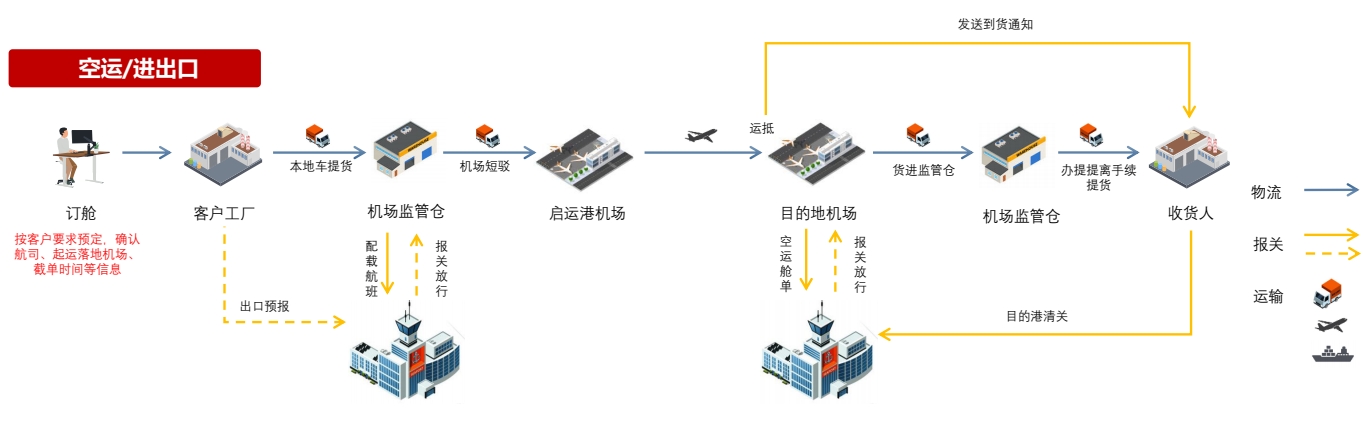国内主要机场皆设合作代理,精心打造优质航运通道。我们以专业团队和成熟体系,提供从国外门点揽收、国际空运到进出口转关、仓储操作、精准配送等全程一站式空运服务。
